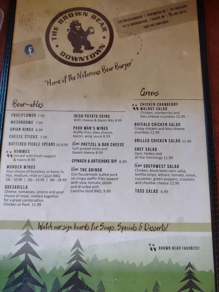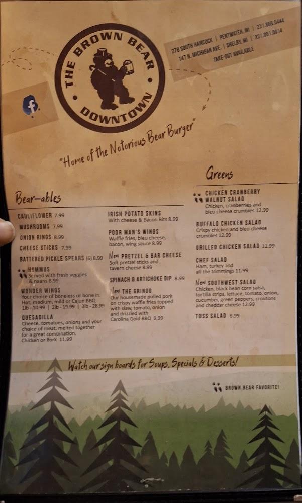 Welcome to Brown Bear, your cozy grill café located at 278 S Hancock St, Pentwater, MI. Enjoy a delightful dining experience with our scrumptious local specialties and an extensive selection of beers and excellent cocktails. Whether you're looking for a quick bite, a casual lunch, or a relaxing dinner, our welcoming atmosphere is perfect for groups and solo diners alike. Take advantage of our happy hour specials and unwind on our accessible terrace. With quick service and amenities for all, including wheelchair accessibility, Brown Bear is your go-to spot for great food, drinks, and fun. Join us today!